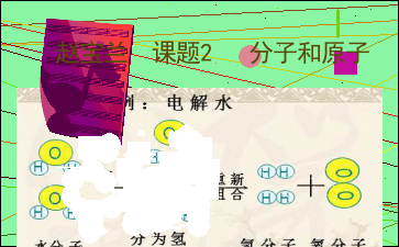 (H2)通电分为氢原子和氧原子例:电解水水的蒸发:由液态的水变成气态的水,状态改变,物质没有改变。保持物质的化学性质. -------物理变化化学变化的实质:分子分成原子,原子重新组合成新的分子。混合物和纯净物混合物:是由不同种分子或不同种原子构成,无固定的组成。