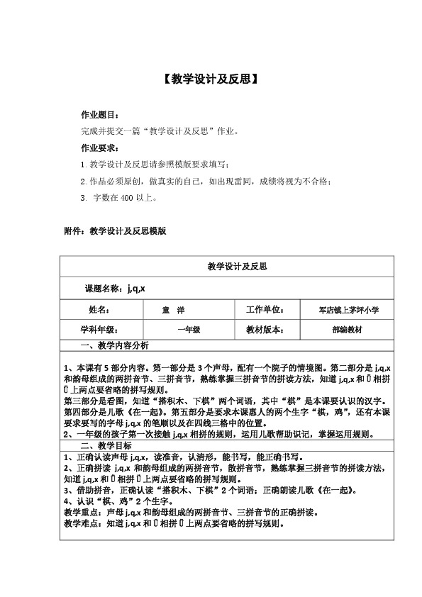 1.教学设计及反思请参照模版要求填写;
