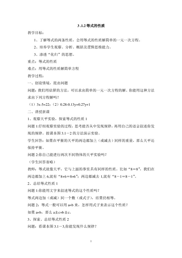 以下为《3.1.2等式的性质》的无排版文字预览,完整格式请下载