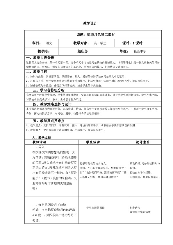 以下为《荷塘月色教学设计》的无排版文字预览,完整格式请下载