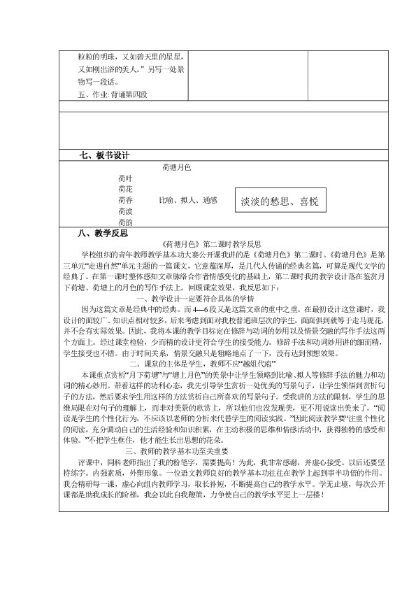 《荷塘月色》第二课时教学反思