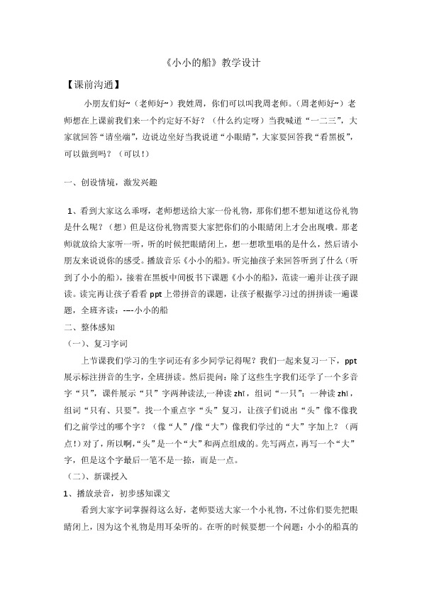 以下为《小小的船教学设计》的无排版文字预览,完整格式请下载