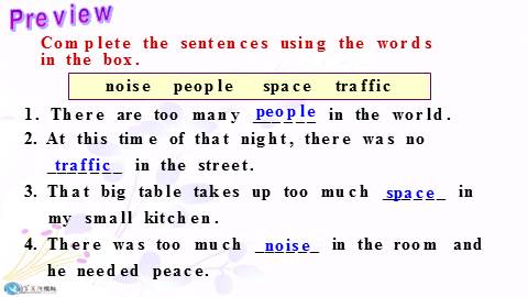 _________________ is a big problem in many countries. Over 250 babies are born every ________ in the world. That _______ over 131.4 million _____ a year. Large population ______ a lot of problems, such as too much _______ and _____. China has a large population. But it won’t ___________ in the future, because families in China are _____________.