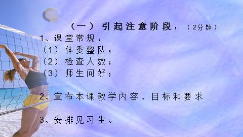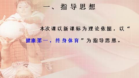 本次课以新课标为理论依据,以“健康第一,终身体育”为指导思想。