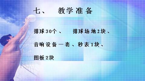 排球30个、 排球场地2块、 音响设备一套、秒表1块、