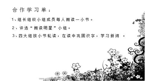 1、组长组织小组成员每人朗读一小节。