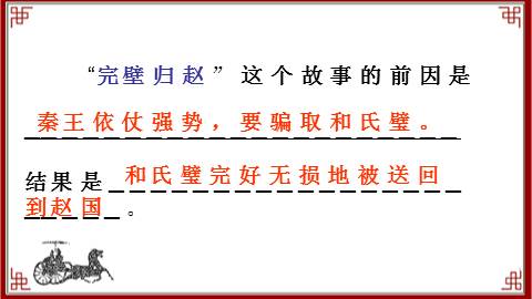 三个故事各有情节,但又紧密联系。“渑池之会”是“完璧归赵” 的发展,“完璧归赵”和“渑池之会”的结果是“负荆请罪” 的起因。
