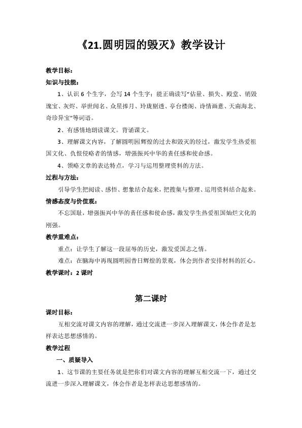 以上为《21圆明园的毁灭教学设计》的无排版文字预览,完整格式请下载