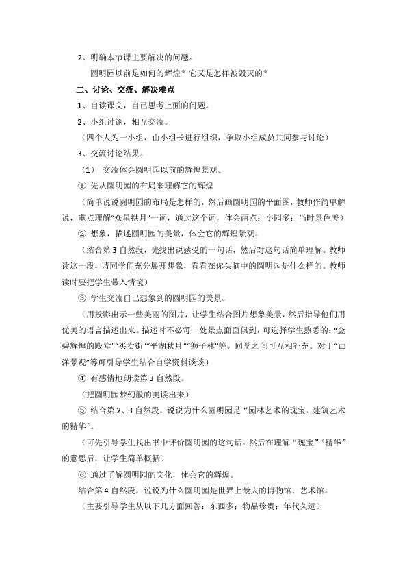 (2)通过交流,体会圆明园是怎样被毁灭的。