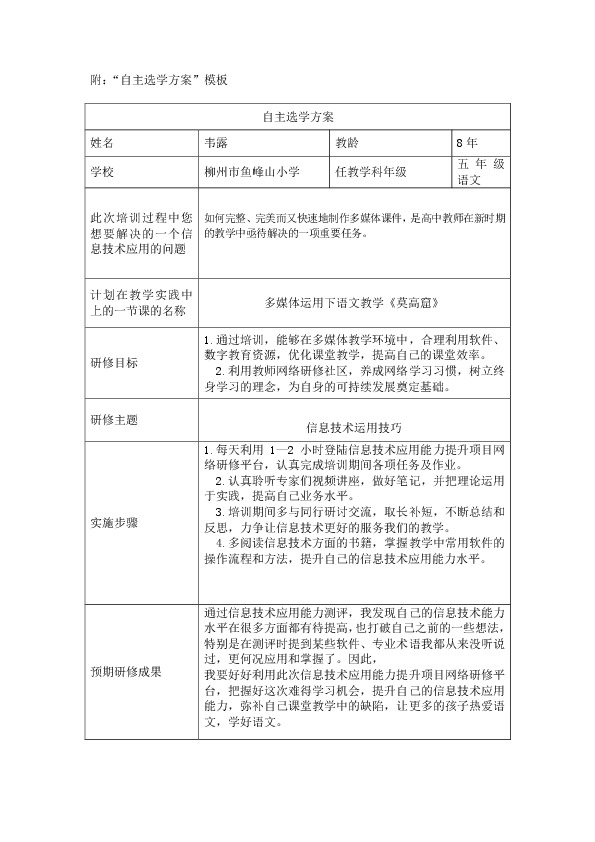 以下为《韦某某自主选学方案》的无排版文字预览,完整格式请下载