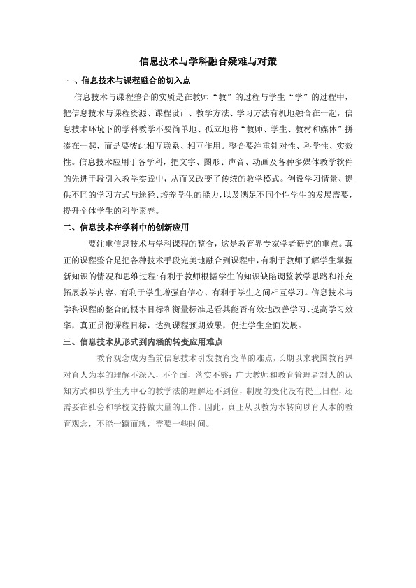 以下为《信息技术与学科融合疑难与对策》的无排版文字预览,完整格式请下载