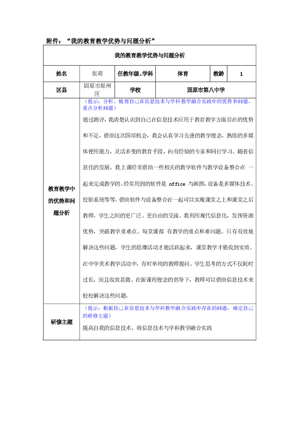 (提示:分析、梳理自己在信息技术与学科教学融合实践中的优势和问题,重点分析问题)