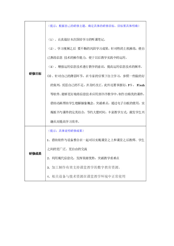 (提示:根据自己的研修主题,确定具体的研修目标,目标要具体明确)
