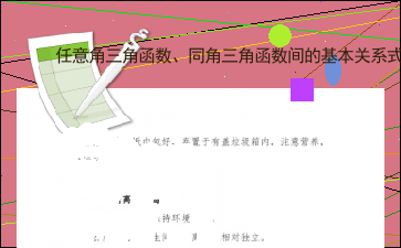 以上为《任意角三角函数、同角三角函数间的基本关系式》的无排版文字预览,完整格式请下载