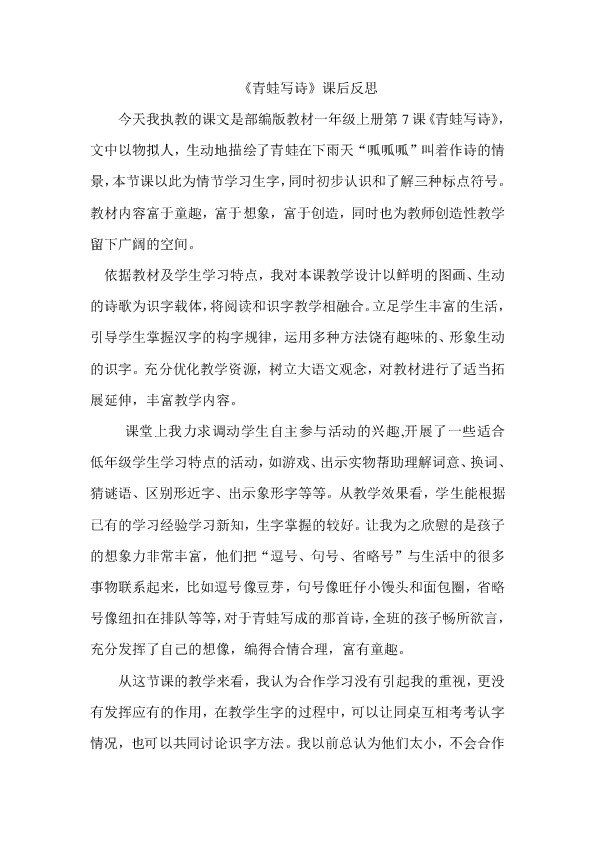 以下为《《青蛙写诗》课后反思》的无排版文字预览,完整格式请下载