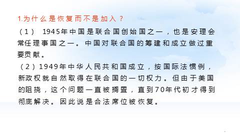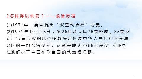 1.为什么是恢复而不是加入?(1)1971年,美国提出“双重代表权”方案。