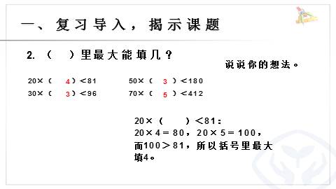 而100>81,所以括号里最大填4。一、复习导入,揭示课题262272 112 1109173绿色圃中小学教育网http://www.bjdcfy.net怎样计算除数是