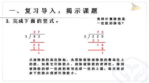 一位数的除法?从被除数的高位除起,先用除数除被除数的最高位上