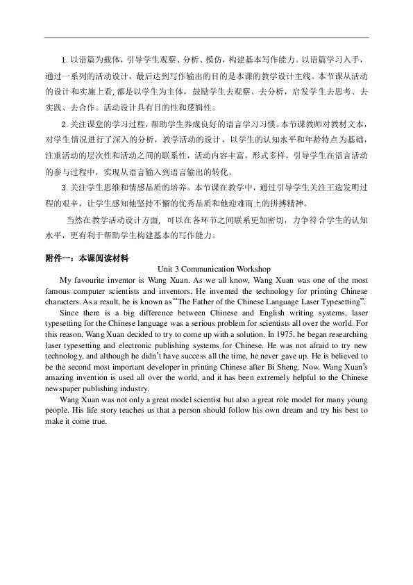 Then ask who invented the Chinese language laser typesetting? Read the text. And after reading, answer the questions“1.Who invented the Chinese language laser typesetting? 2,What’s the text mainly about”
