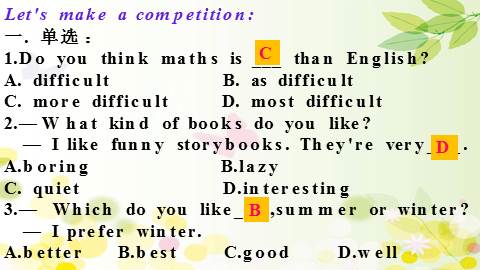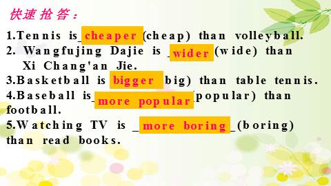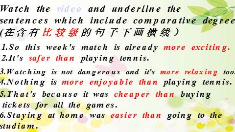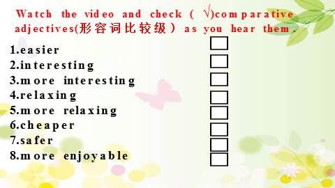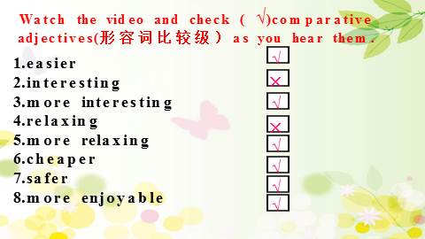 Watch the video and check ( √)comparative adjectives(形容词比较级)as you hear them.