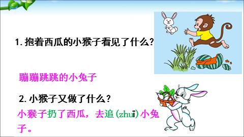 小猴子扔了西瓜,去追(zhuXXXXX)小兔子。