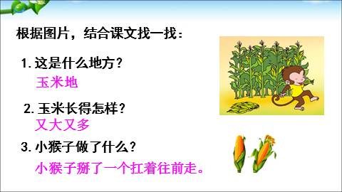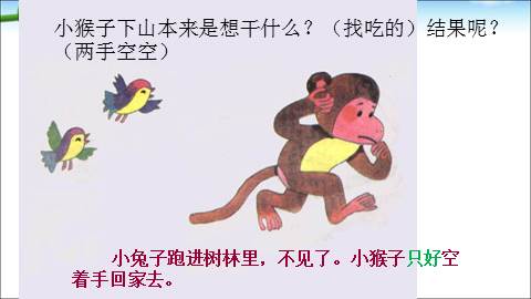 小猴子下山本来是想干什么?(找吃的)结果呢?(两手空空)