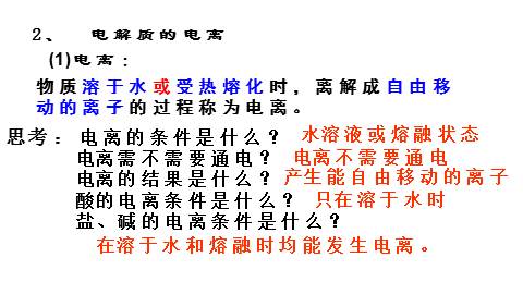 物质溶于某某或受热熔化时,离解成自由移动的离子的过程称为电离。