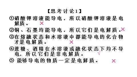 ④蔗糖、酒精在水溶液或融化状态下均不导电,所以它们是非电解质。
