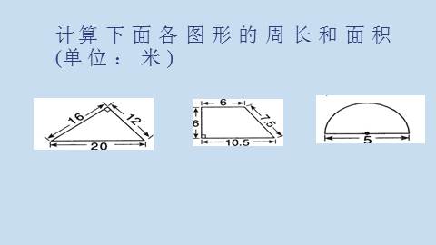 计算下面各图形的周长和面积(单位:米)