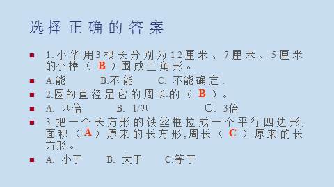 1.小华用3根长分别为12厘米、7厘米、5厘米的小棒( )围成三角形。