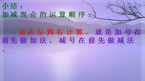 是从左到右计算,就是加号在前先做加法,减号在前先做减法