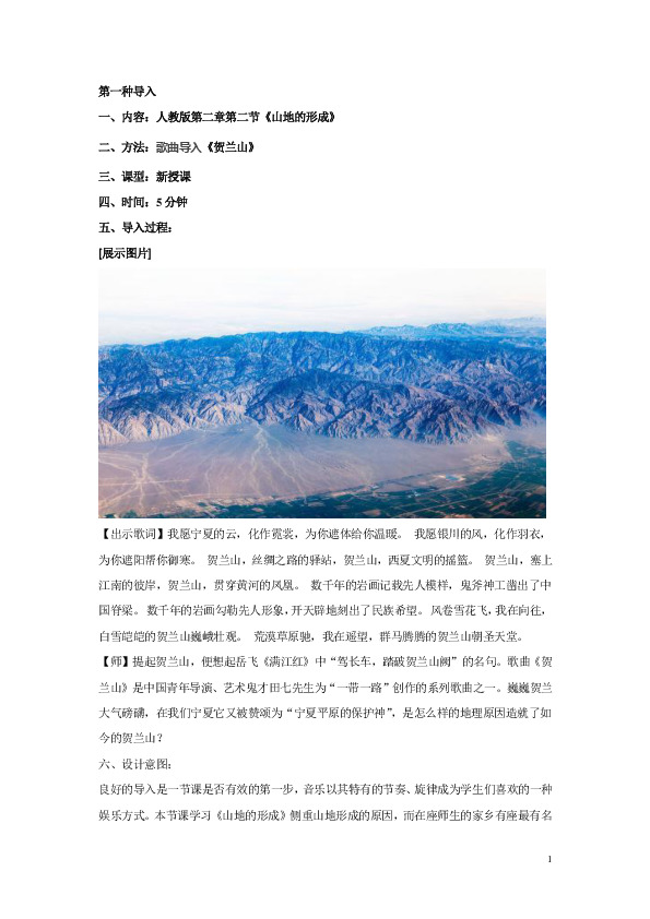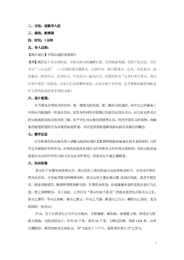 以下为《课堂导入环节的案例——山地的形成(杜某某) (2)》的无排版文字预览,完整格式请下载