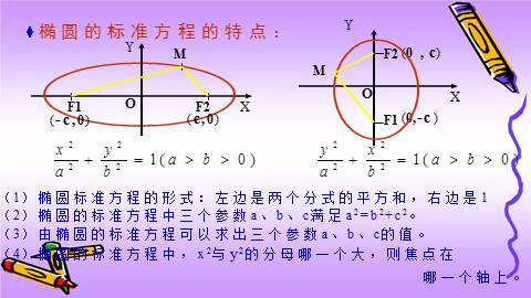 (2)椭圆的标准方程中三个参数a、b、c满足a2=b2+c2。
