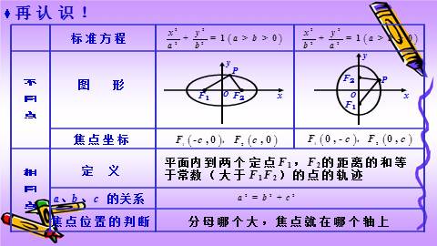 (1)椭圆标准方程的形式:左边是两个分式的平方和,右边是1