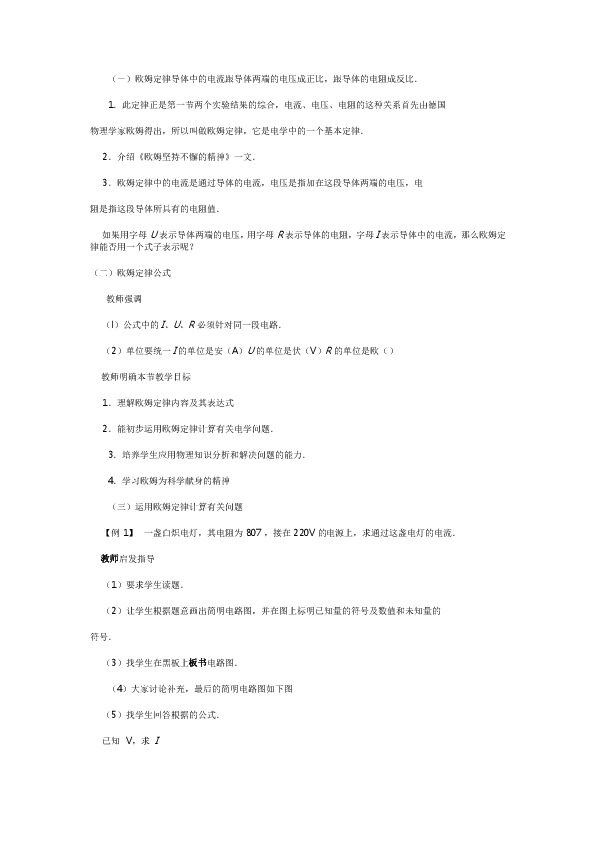 情感目标 介绍欧姆的故事,对学生进行热爱科学、献身科学的品格教育.