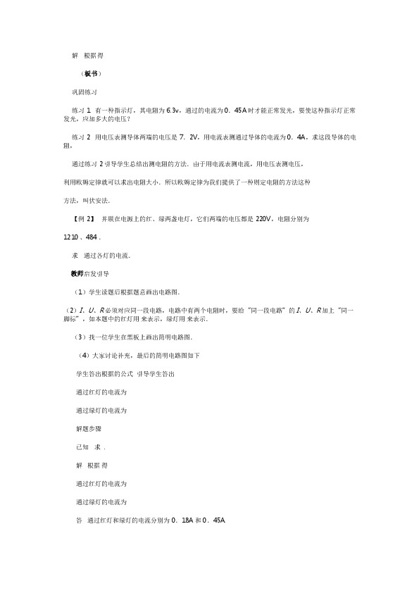 ??? 【例2】? 并联在电源上的红、绿两盏电灯,它们两端的电压都是220V,电阻分别为