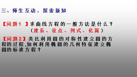 【问题2】类比利用圆的对称性建立圆的方程的过程,如何利用椭圆的几何特征建立椭圆的标准方程?