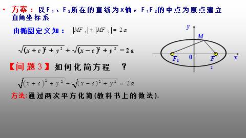 方案:以F1、F2所在的直线为x轴,F1F2的中点为原点建立直角坐标系
