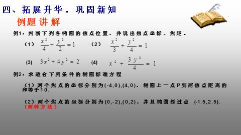 (2)两个焦点的坐标分别为(0,-2),(0,2),并且椭圆经过点 (-1.5,2.5).(两种方法)