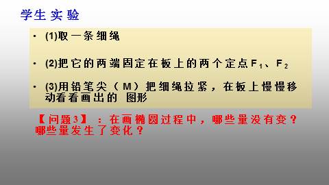 (3)用铅笔尖(M)把细绳拉紧,在板上慢慢移动看看画出的 图形