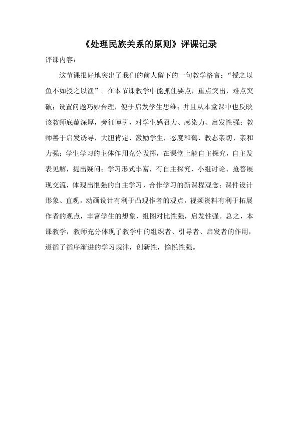 以下为《处理民族关系的原则——听评课记录》的无排版文字预览,完整格式请下载