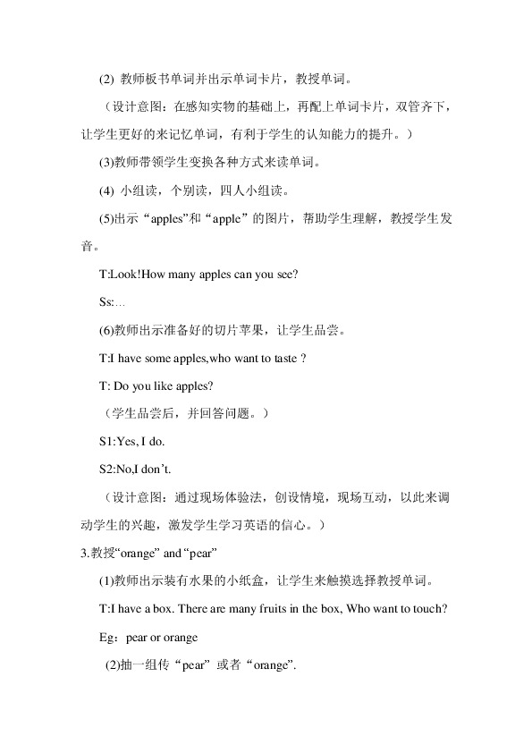 (7)教师出示准备好的梨或橙子,让学生品尝。