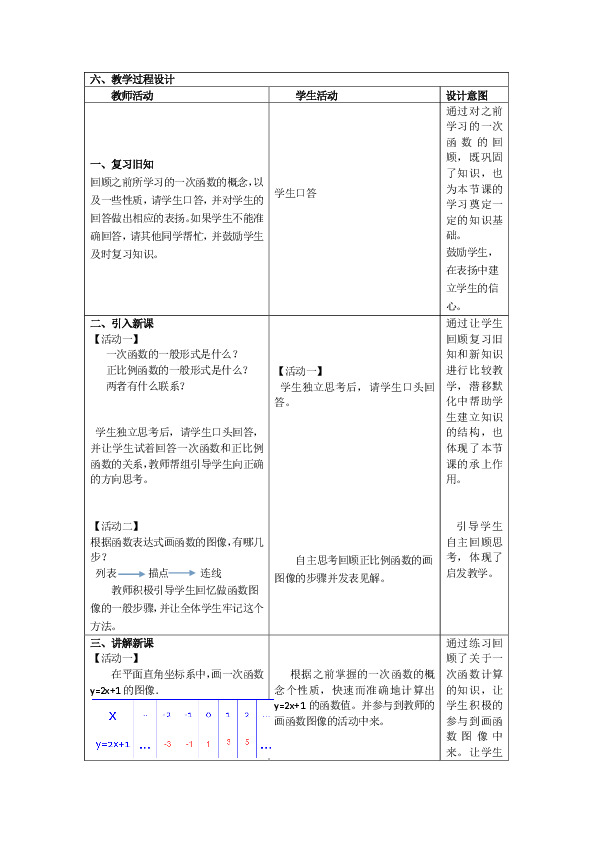 根据之前掌握的一次函数的概念个性质,快速而准确地计算出y=2x+1的函数值。并参与到教师的画函数图像的活动中来。