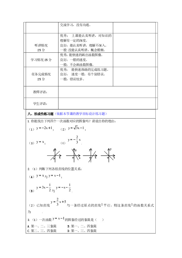 八、形成性练习题(依据本节课的教学目标设计练习题)