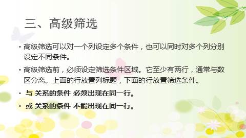 1、高级筛选可实现各条件之间的“或”关系的筛选,而自动筛选不能。