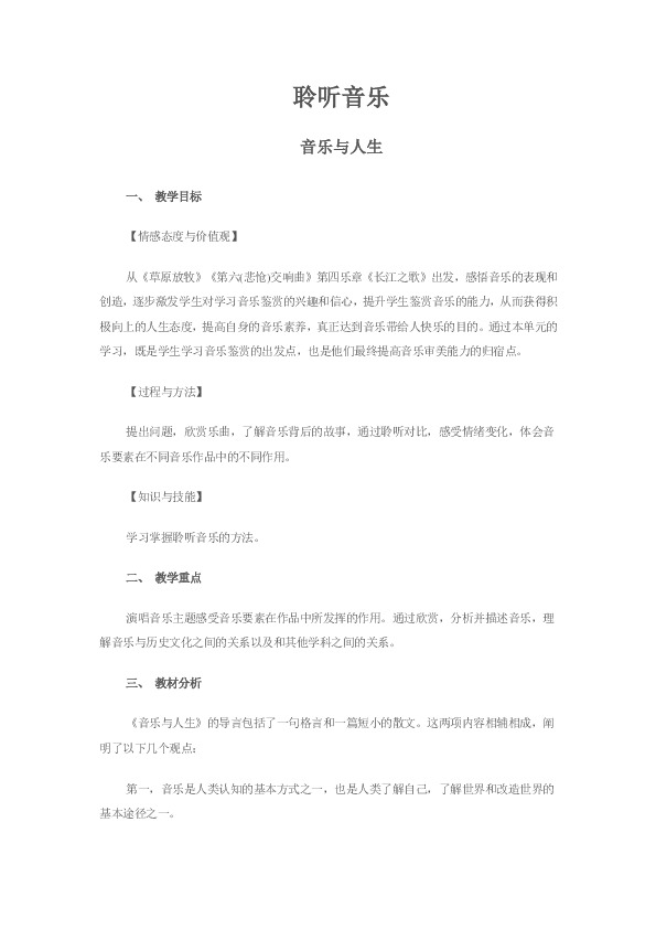以下为《音乐教案聆听》的无排版文字预览,完整格式请下载