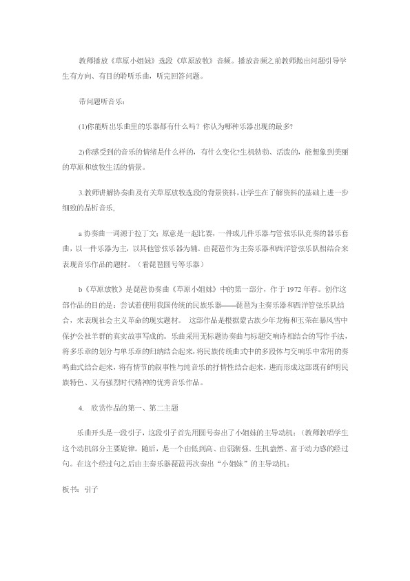 3.教师讲解协奏曲及有关草原放牧选段的背景资料,让学生在了解资料的基础上进一步细致的品析音乐,