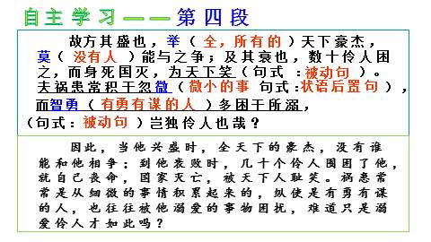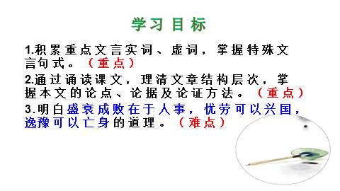 3.明白盛衰成败在于人事,忧劳可以兴国,逸豫可以亡身的道理。(难点)