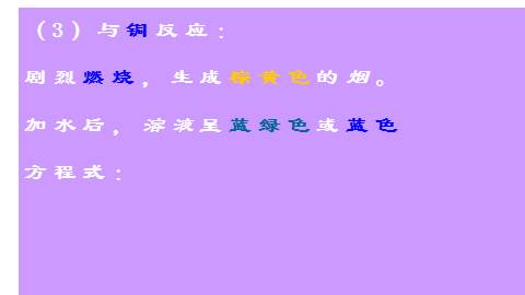 剧烈燃烧,生成褐色的烟。加水后,溶液呈黄色