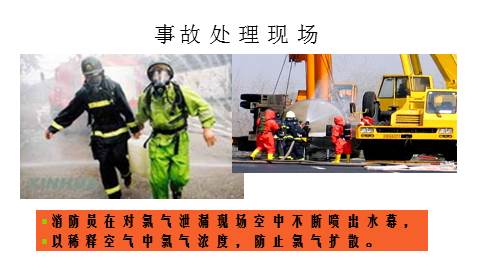 事发后消防队员不断地用水枪喷射,但时值西南风,氯气迅速向西南方扩散 ,造成350 人中毒进医院救治, 另有28人中毒死亡的特大事故,附近居民采取应急措施,疏散到一高坡上。